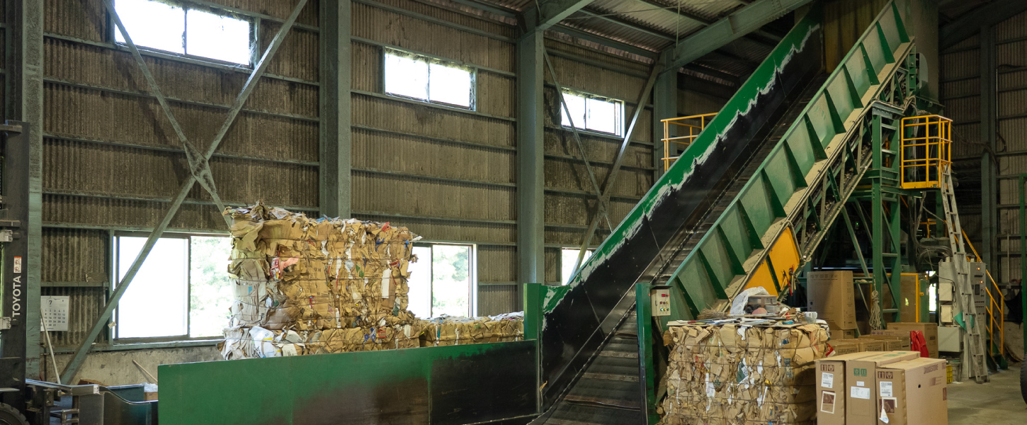 古紙などの再生資源を製紙原料として選別・管理し、製紙メーカーへ安定供給。資源循環と環境保全に貢献しています。