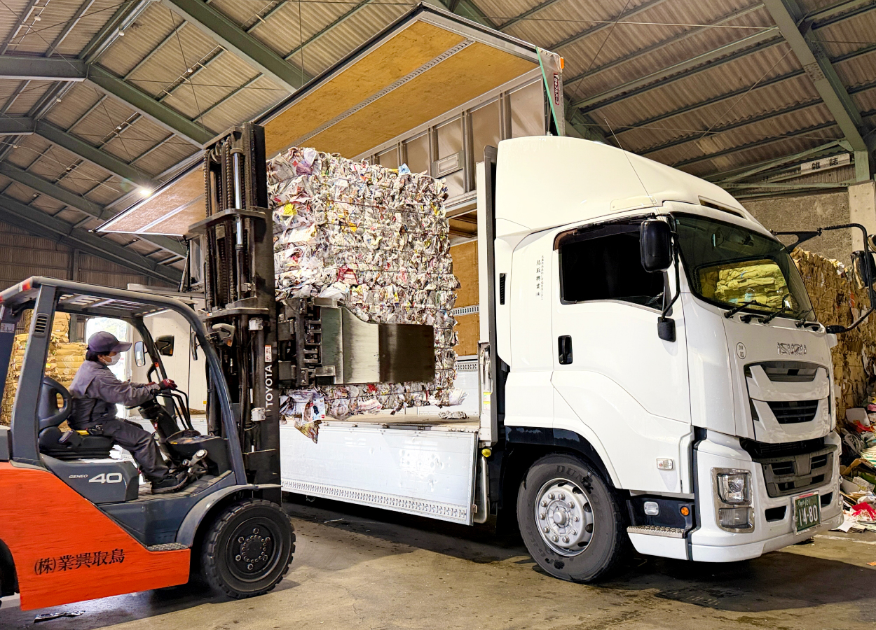 回収・選別した古紙は製紙原料として品質管理し、製紙メーカーへ安定供給しております。 資源の有効活用と循環型社会の実現を目指し、再生紙原料の流通を通じて環境負荷の低減と持続可能な社会づくりに貢献しています。